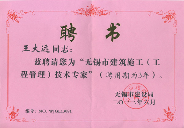 | 市建設局聘任無錫市建筑施工技術專家 | ||