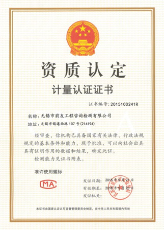 自公司申請實驗室資質認定(擴項、復查)后,先后通過初審、評審專家組現場考評、審批、公示、公告、發證,于5月21日,江蘇省質量技術監督局頒發了新的資質認定計量認證證書。共批準公司實驗室檢測產品68項,檢測參數380個,此次擴項包括鋼管、扣件、承插型盤扣式鋼管支架、輕鋼龍骨、紙面石膏板、裝飾石膏板、鋼筋機械連接工藝檢測等。 經過九年的辛勤耕耘,無錫市前友工程咨詢檢測有限公司在各級主管部門的領導和關心下,在廣大客戶的支持和配合下,在全體職工的不懈努力下,重學習,嚴管理,檢測能力不斷提高。至今,已具備了以下檢測資質能力項目: 見證取樣類:水泥物理力學性能;鋼筋(焊接連接)力學性能;砂、石常規;混凝土、砂漿強度;簡易土工;混凝土摻加劑(外加劑、粉煤灰);瀝青、瀝青混合料;預應力鋼絞線、錨夾具、金屬螺紋管。 專項檢測類:主體結構工程現場檢測(混凝土結構及構件實體、砌體結構、結構性能、后置埋件、建筑物沉降觀測);鋼結構工程檢測(鋼結構用鋼材、連接件、鋼結構焊縫質量、防腐防火涂裝、鋼結構變形);建筑節能檢測(建筑節能材料檢測、建筑節能現場檢測、熱工性能檢測)。 備案檢測類:室內環境檢測、建筑水電檢測、墻體、屋面材料、飾面材料、防水材料、門窗檢測。 安全檢測類:鋼管、扣件、承插型盤扣式鋼管支架檢測。 其它類:相零線檢測、截面尺寸檢測(現澆樓板厚度檢測)、室內空間尺寸檢測、輕鋼龍骨、紙面石膏板、裝飾石膏板、鋁塑復合板檢測。