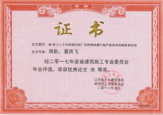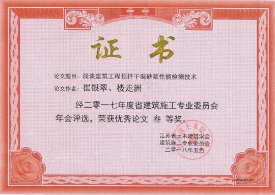 無錫市前友工程咨詢檢測有限公司長期致力建立學習創新型企業,這次,又有“鋼管模架整體結構力學性能試驗”、“淺談建筑施工預拌干混砂漿性能檢測技術”等七篇論文獲獎。