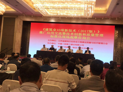 為貫徹落實《省政府關于促進建筑業改革發展的意見》和住房城鄉建設部《建筑業10項新技術(2017版)》、進一步推廣應用建筑業新技術,促進建筑行業科技進步和成果轉化,不斷深化全面質量管理的理念,加強國家和行業相關規范和標準的學習,江蘇省建筑行業協會工程建設質量與技術管理分會于10月13日~14日在寧舉辦《建筑業10項新技術》推廣應用交流暨技術創新和質量管理標準化現場觀摩咨詢活動,參會人員達400多人,無錫市施工技術學術委員集體報名參加了活動。 會上,汪道金教授級高工解讀了《建筑業10項新技術(2017版)》,郭正興教授講解了裝配式砼建筑推廣應用中面臨的主要問題及對策。 會議還安排了工地現場觀摩,先后參觀了南京大地建設(集團)股份有限公司施工的南京丁家莊二期保障房A27項目和中建八局三公司施工的南京國際博覽中心三期工程。