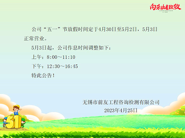 | 關于“五一”勞動節放假及節后營業時間調整的公告 | ||