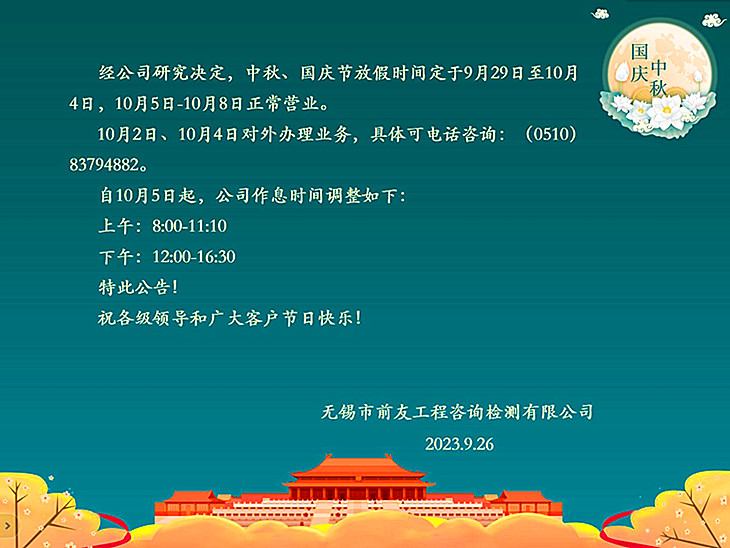 | 關于中秋、國慶放假及節后營業時間調整的公告 | ||