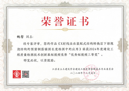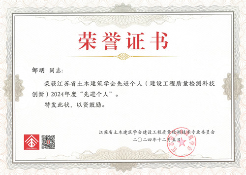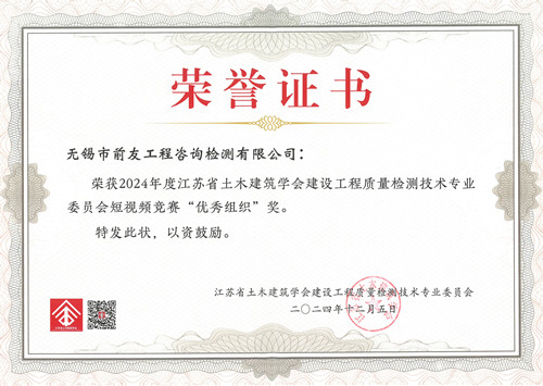 12月5日,第六屆全省建設(shè)工程質(zhì)量檢測(cè)技術(shù)研討會(huì)暨江蘇省土木建筑學(xué)會(huì)建設(shè)工程質(zhì)量檢測(cè)技術(shù)專(zhuān)業(yè)委員會(huì)2024年年會(huì)在南京召開(kāi)。省、市建設(shè)行業(yè)行政主管部門(mén)領(lǐng)導(dǎo)、省土木建筑學(xué)會(huì)領(lǐng)導(dǎo)、專(zhuān)委會(huì)委員及會(huì)員代表近200人參加會(huì)議。 會(huì)議主題:守正創(chuàng)新,智慧未來(lái)。主要內(nèi)容:江蘇省土木建筑學(xué)會(huì)建設(shè)工程質(zhì)量檢測(cè)技術(shù)專(zhuān)業(yè)委員會(huì)2024年度工作總結(jié);江蘇省土木建筑學(xué)會(huì)先進(jìn)集體(建設(shè)工程質(zhì)量檢測(cè)科技創(chuàng)新)、先進(jìn)個(gè)人(建設(shè)工程質(zhì)量檢測(cè)科技創(chuàng)新)表彰;優(yōu)秀論文表彰;創(chuàng)新成果短視頻表彰;專(zhuān)家學(xué)術(shù)報(bào)告及檢測(cè)機(jī)構(gòu)經(jīng)驗(yàn)交流等。 無(wú)錫市前友工程咨詢(xún)檢測(cè)有限公司獲江蘇省土木建筑學(xué)會(huì)(建設(shè)工程質(zhì)量檢測(cè)科技創(chuàng)新)先進(jìn)集體和短視頻競(jìng)賽“優(yōu)秀組織獎(jiǎng)”。鄒明研究員級(jí)高工獲(建設(shè)工程質(zhì)量檢測(cè)科技創(chuàng)新)先進(jìn)個(gè)人,鮑哲高工獲2024年度建設(shè)工程質(zhì)量檢測(cè)技術(shù)創(chuàng)新成果短視頻競(jìng)賽“優(yōu)秀短視頻三等獎(jiǎng)”。